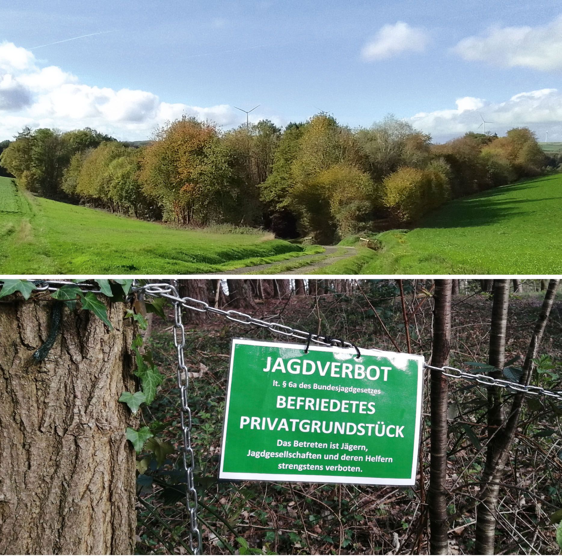 Marc T.* hat es geschafft: Seine Grundstücke in Essen (Nordrhein-Westfalen) mit insgesamt 15 Hektar Feld, Wiese und Wald sind mit Beginn des neuen Jagdjahres 2020/21 offiziell jagdfrei. Es sind rund 8 Hektar Acker, 5 Hektar Wiese und 1,5 Hektar Wald , berichtet der Grundstückseigentümer. Ein Bach fließt an der Grenze entlang, von der Stadt Essen als schützenswertes Biotop eingestuft. |