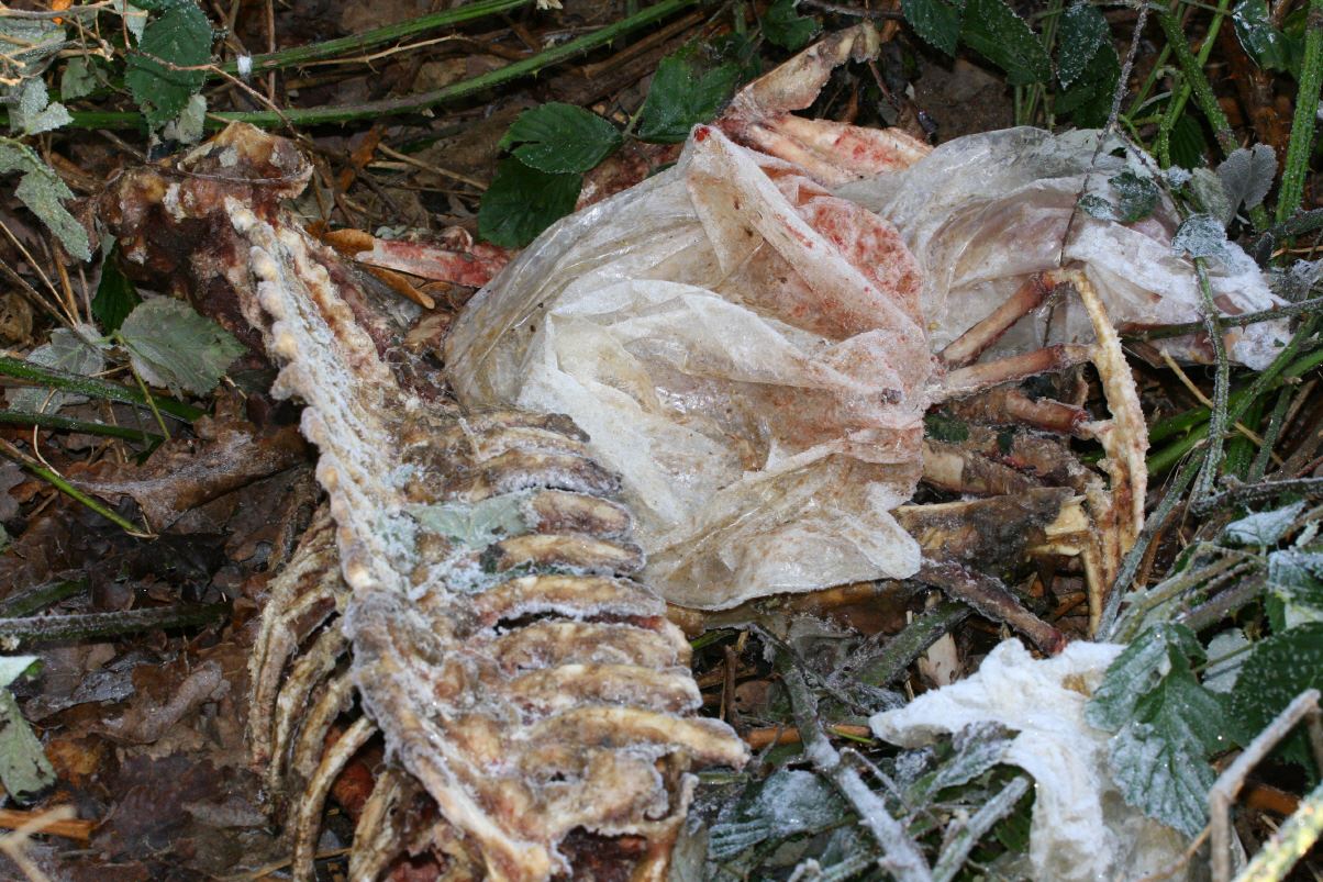 Diese Aufnahme zeigt einen toten Bussard auf dem Luderplatz - dieser wurde von der der Amtstierärztin am 20.1.2009 sichergestellt.